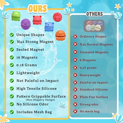 Bambibo Reusable Water Balloons for Kids - Pack of 18 | Anti Slip Animal Design, Water Bombs | Mesh Bag Refillable Water Balloons Quick Fill Magnetic Balls | Water Toys Pool Toys for Kids Ages 4-8